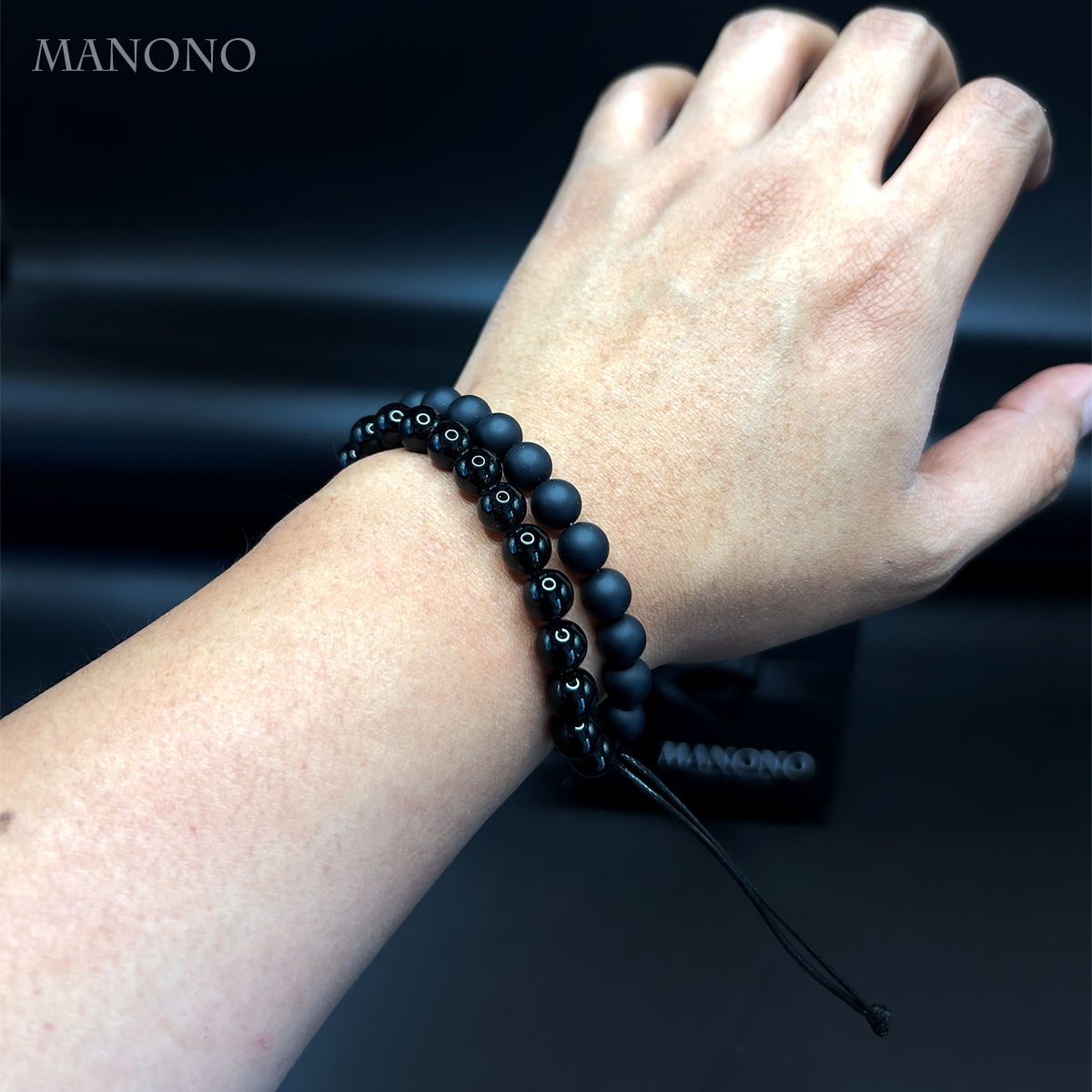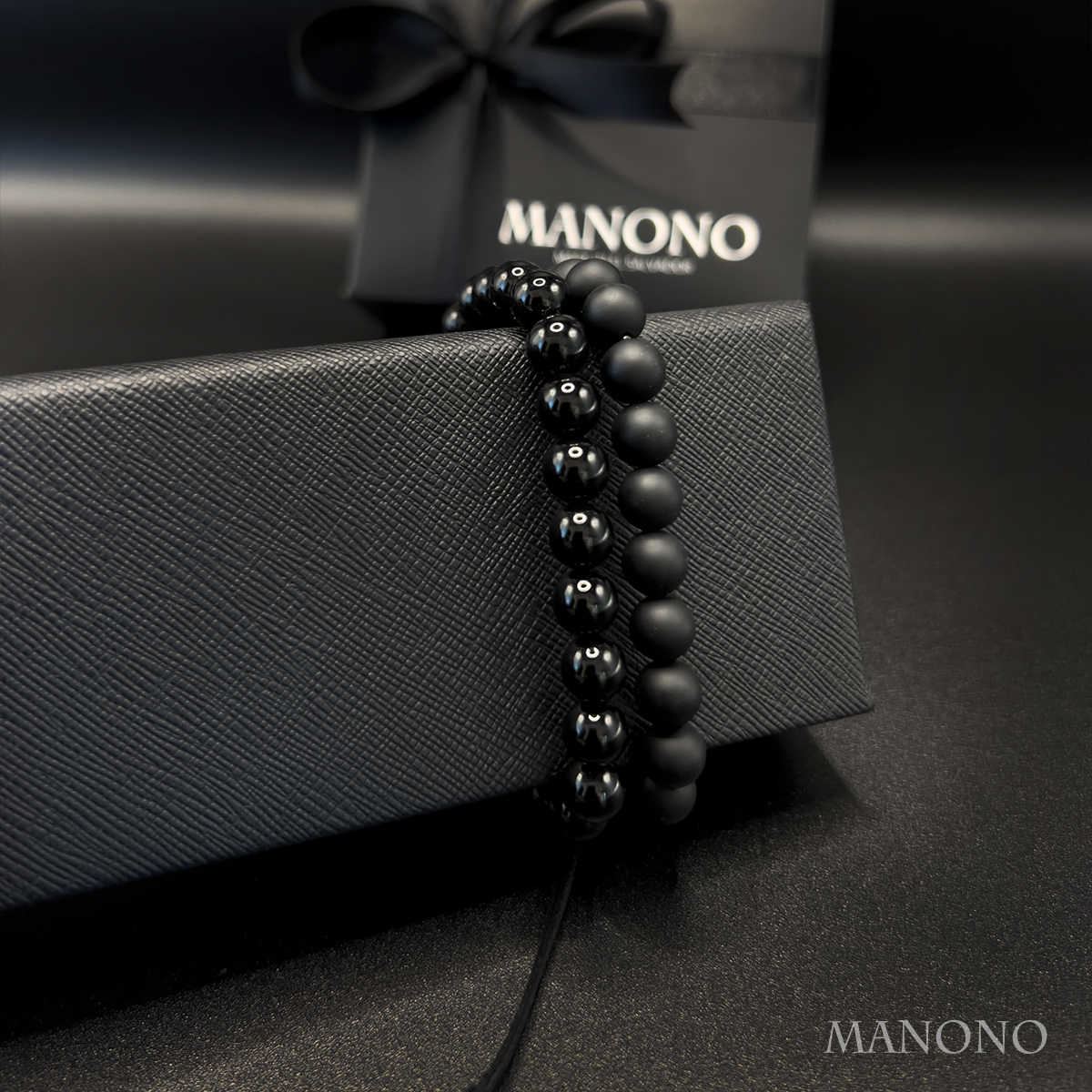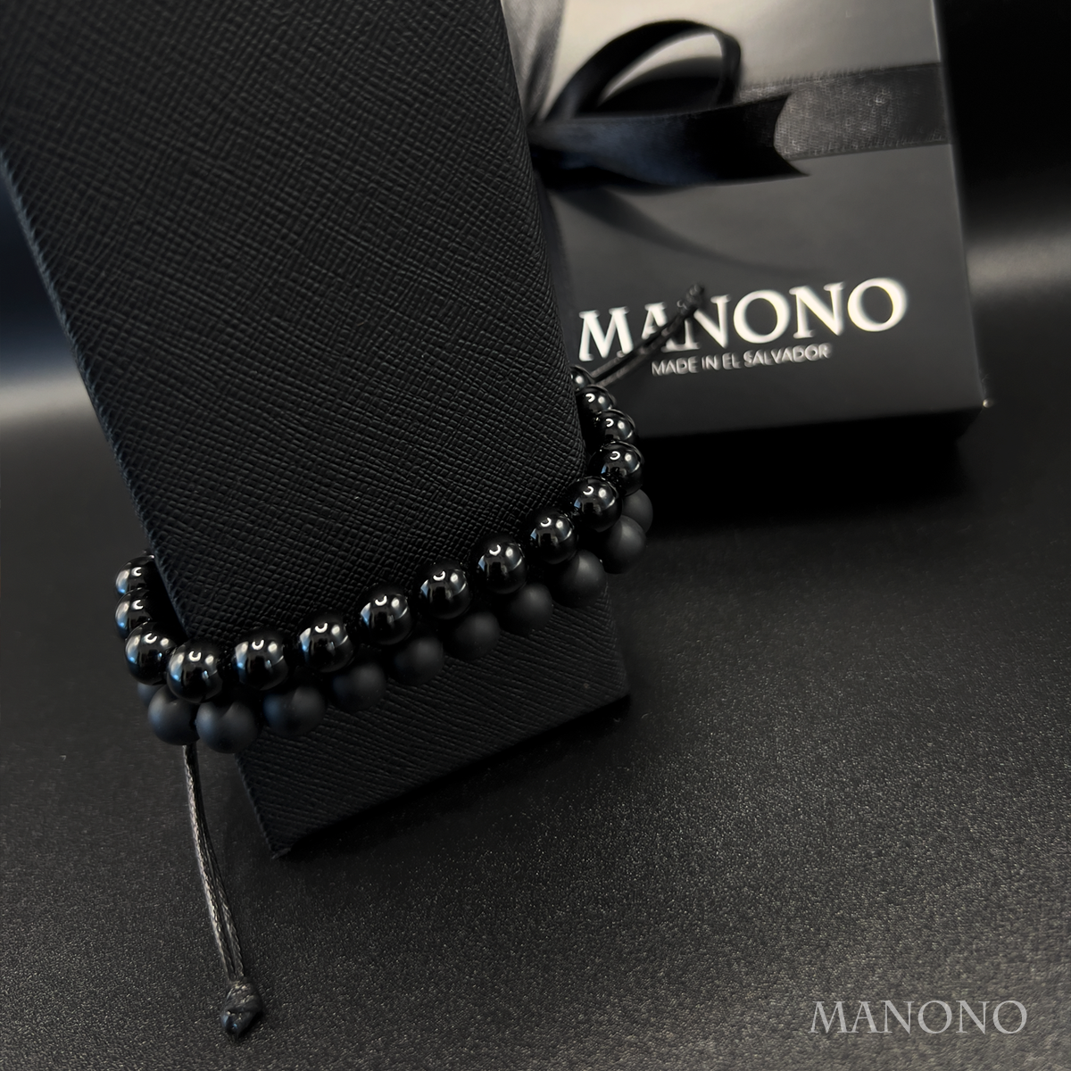 Dos texturas, una misma esencia. El contraste entre ónix negro mate y brillante de 8 mm refleja las distintas facetas que conviven en una sola identidad. Cambias, evolucionas, te transformas… pero sigues siendo tú. Ese es el verdadero amor propio.